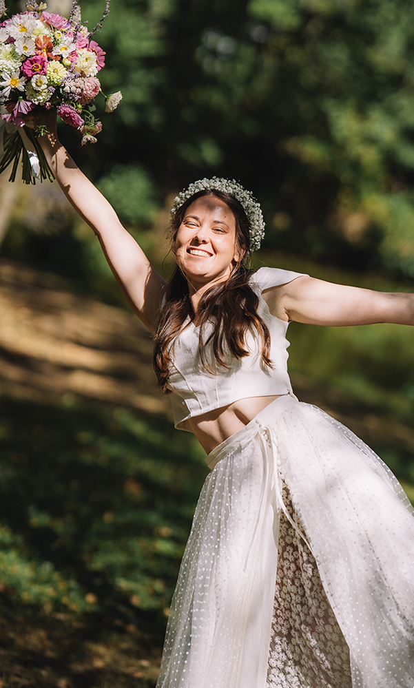 Variabilní třídílné šaty vznikly s myšlenkou udržitelnosti, slow fashion a smysluplného šatníku, který s vámi žije déle než jeden den. Jednotlivé části můžete kombinovat podle nálady i příležitosti, získáte tak pohodlné šaty pro svatbu i další slavnostní či každodenní okamžiky. Investujete do kvalitního řemesla, nadčasového designu a řešení, které je šetrné k přírodě i k vašemu rozpočtu.